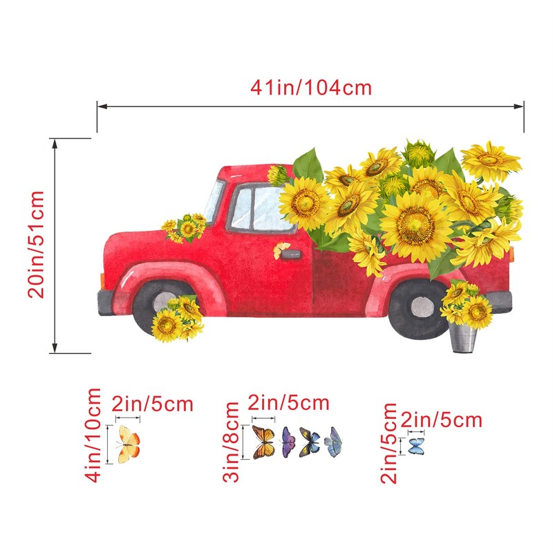 AnFigure Red Truck Sunflower Wall Decal Living Room Bedroom Wall Stickers Girls Room Baby Room Flowers Butterfly TV Sofa Background Wall Art Decor Mural Vinyl Peel and Stick Decorations