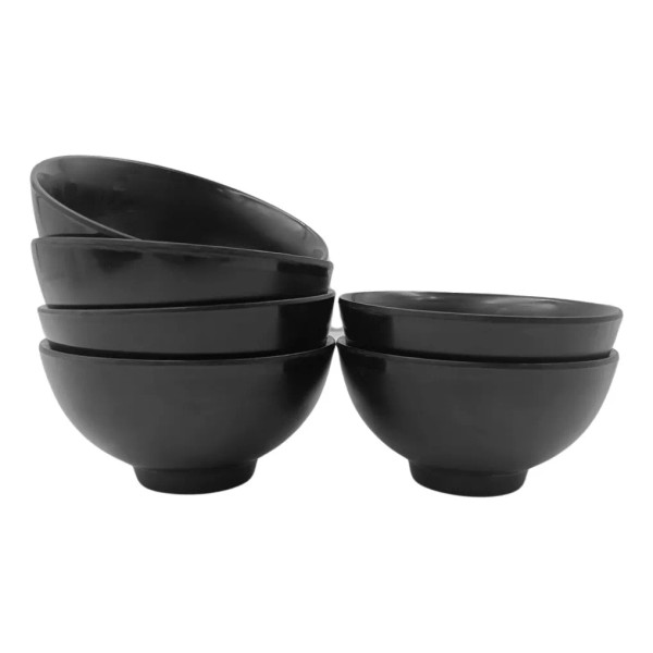 Anforama Juego Kit Plato Sopero Tazón De Melamina Negra 350 Ml 6pzas