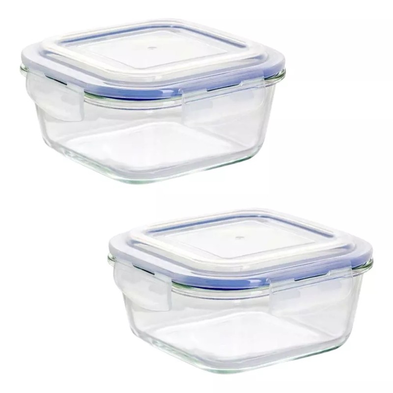 Juego de 2 recipientes refractarios de vidrio. Ideales para transportar con toda seguridad a cualquier lugar.