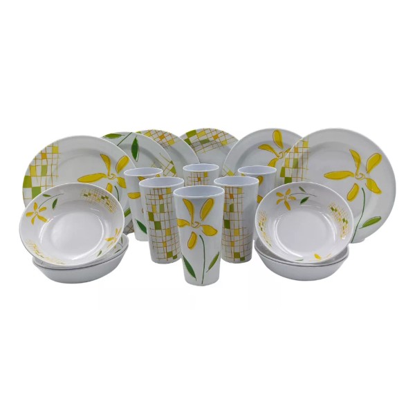 Descubre la perfección en cada detalle con nuestra excepcional vajilla de melamina de 18 piezas, diseñada pensando en la comodidad y el estilo de tu mesa. Esta colección moderna y sofisticada ha sido cuidadosamente confeccionada para satisfacer tus necesidades diarias y ocasiones especiales por igual.