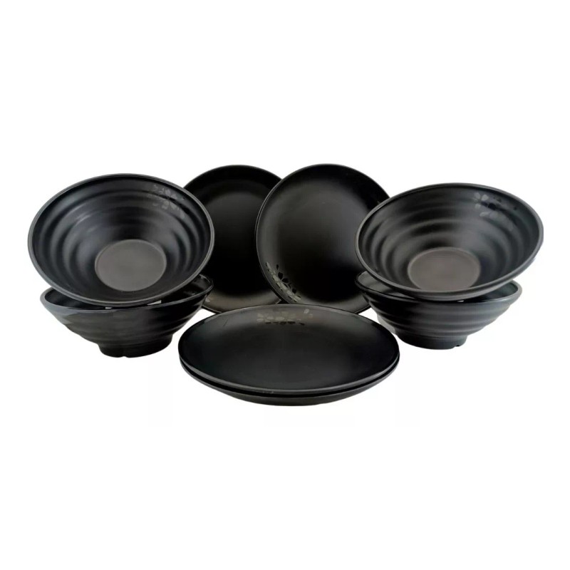 Anforama Vajilla Redonda Negra Tipo Plastico De Melamina 4 Personas