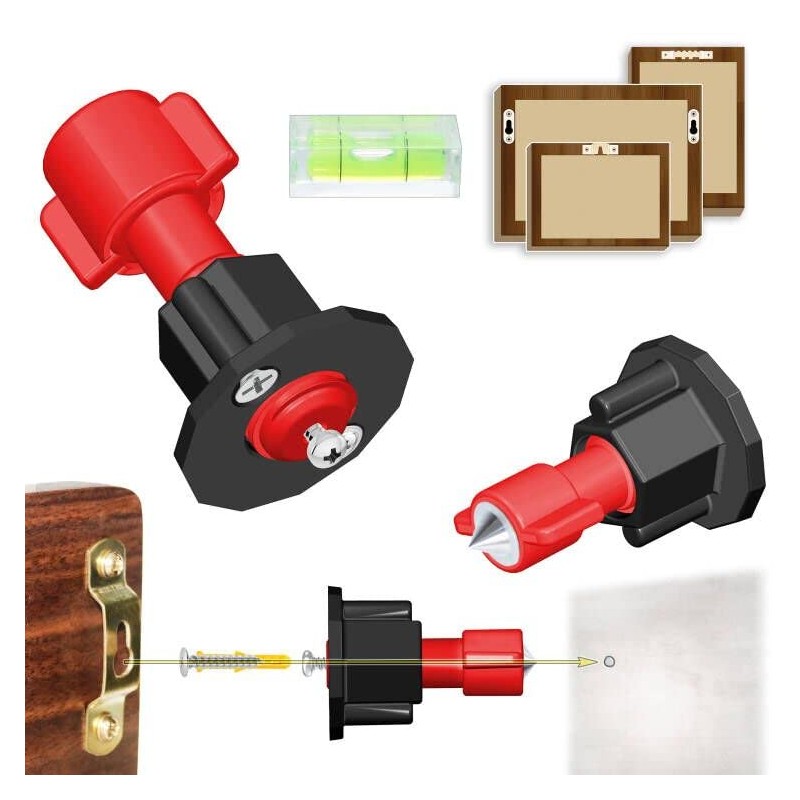 - Easy to work: When you need hanging picture, Frist mountd the marking tool to the back of the picture, tightened them down and removed the ink caps; Second set the picture where you wanted it and press, the stamp makes a mark exactly where you need to pound a nail to hang picture.