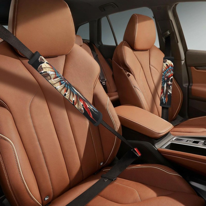 ANFXIEDU America Indian Skull 2 PCS Car Seat Belt Pad Cover for Adults, Suitable for Car Seat Belt Backpack Shoulder Bag