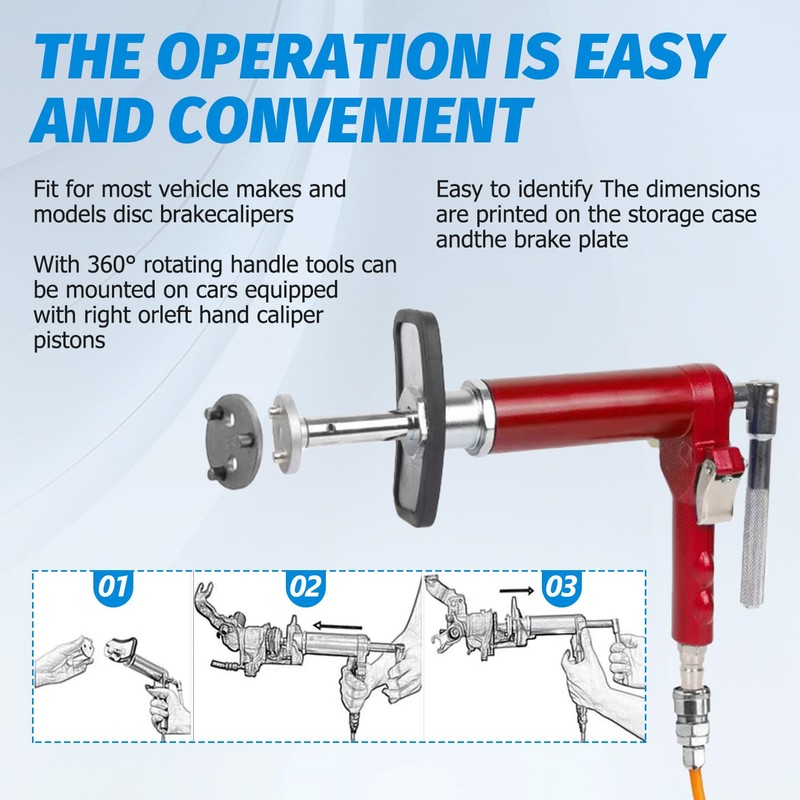 - ✪Dual-Functionality for Various Pistons: Designed for use with both 'Push back' and 'Wind back' pistons, this caliper piston compressor tool allows for safe and efficient rotation of pistons back into the caliper, preventing damage to pistons and brake components. It also provides necessary clearance for new brake pads, functioning as an effective brake pad spreader tool.