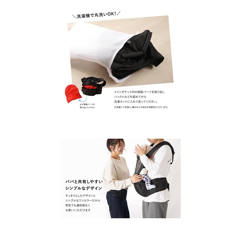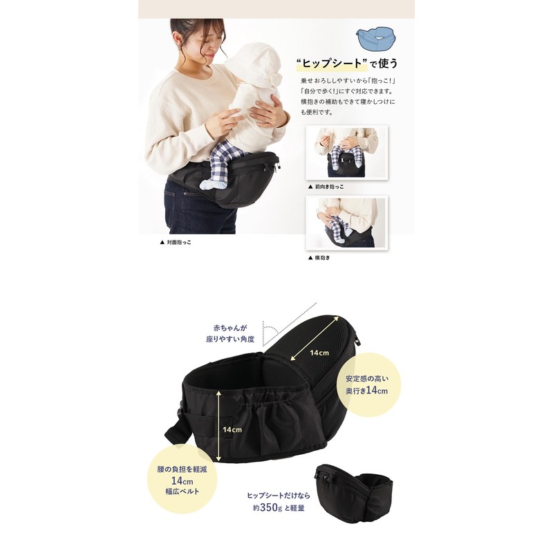 - Your child who began to walk. Walk! It is easy to handle. A hip seat that is easy to put on and take off. By attaching a carrier, you can also use it as a baby string. Thick shoulder pads and wide waist belts reduce the burden on your shoulders and lower back