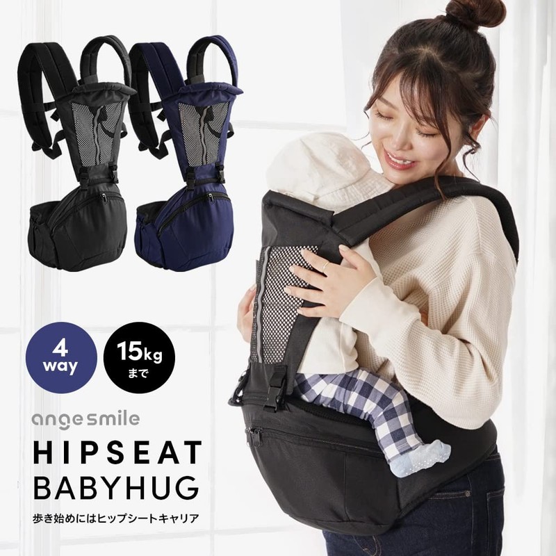 Ange Smile Hip Seat Carrier, Baby Hug, Shoulder, Easier to Hug, Easy to Put on and Put on, Reduces the Strain on Your Waist, Mesh, Multi-functional, Baby Straps, 4-Way, Machine Washable, Navy