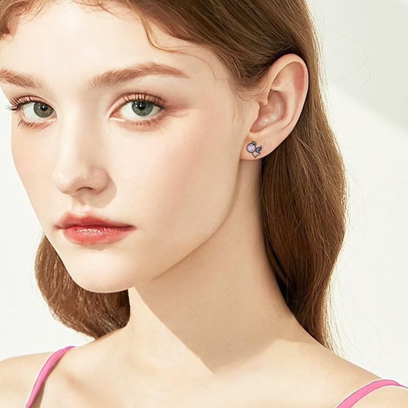 Angel and Devil Stud Earrings 925 Sterling Silver Cubic Zirconia Rose Cut Stud Earrings Jewellery Hypoallergenic Angel and Devil Earrings Christmas for Girls Women (Light Pink), Sterling Silver, Cubic