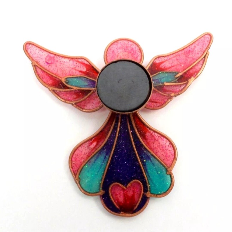 Angel Christmas Magnet Refrigerator Decoration Pink Blue Faux Stained Glass