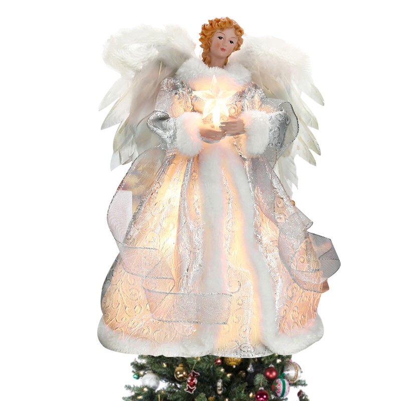 Angel Christmas Tree Topper, Angel Statue for Christmas Tree with LED Light,Illuminated Angel Tree Topper for Christmas Tree Decoration,Christmas Party Supplies Angel with Warm Yellow Light