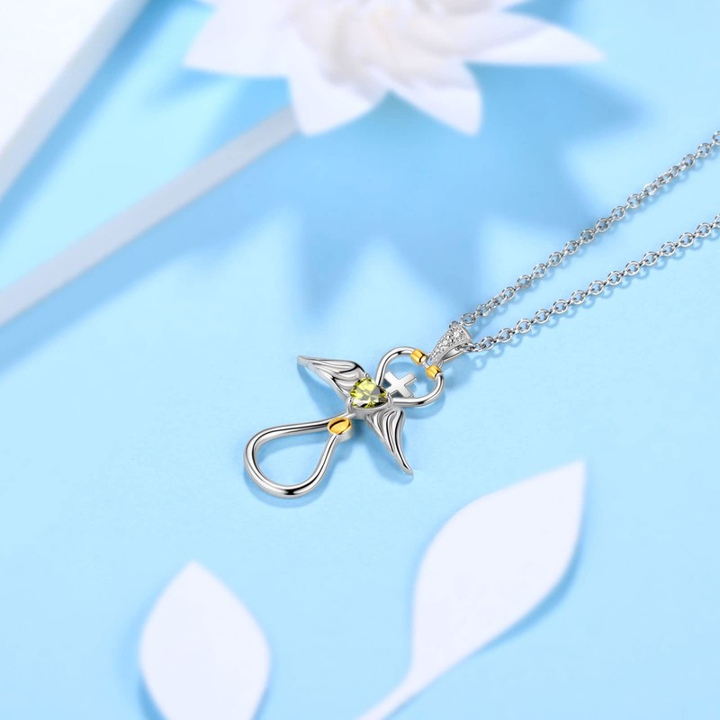 Angel Heart Nurse Necklace for Women August Birthstone Stethoscope Neckalce Jewelry Gift for Doctors Nurses Graduation Medical Student Gold 925 Sterling Silver Two Tones Nursing Jewelry Gift FP0206A
