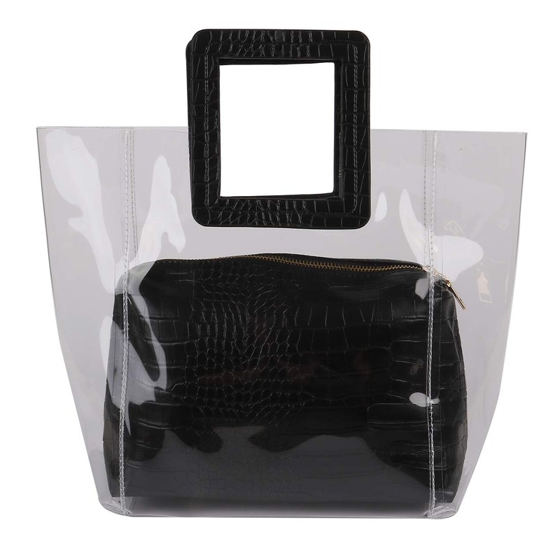 - Introducing a women’s handbag with the voice of a large clear tote bag. A trendy PVC bag that is easy to use. The square handle is stylish and stylish. You can store small items that you don't want to show, and remove the pouch to show all of your items in style and use them according to your mood of the day