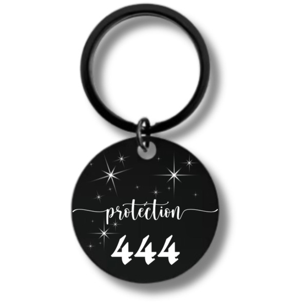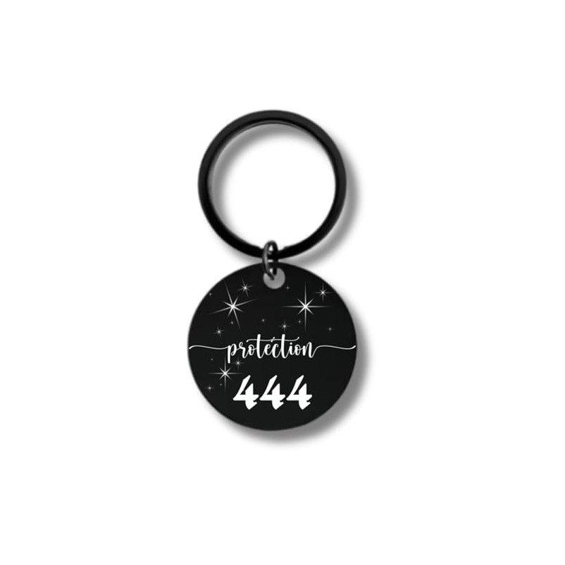 Angel Numbers, Stainless Steel Rectangular Wish Keychain (444, Black Color)