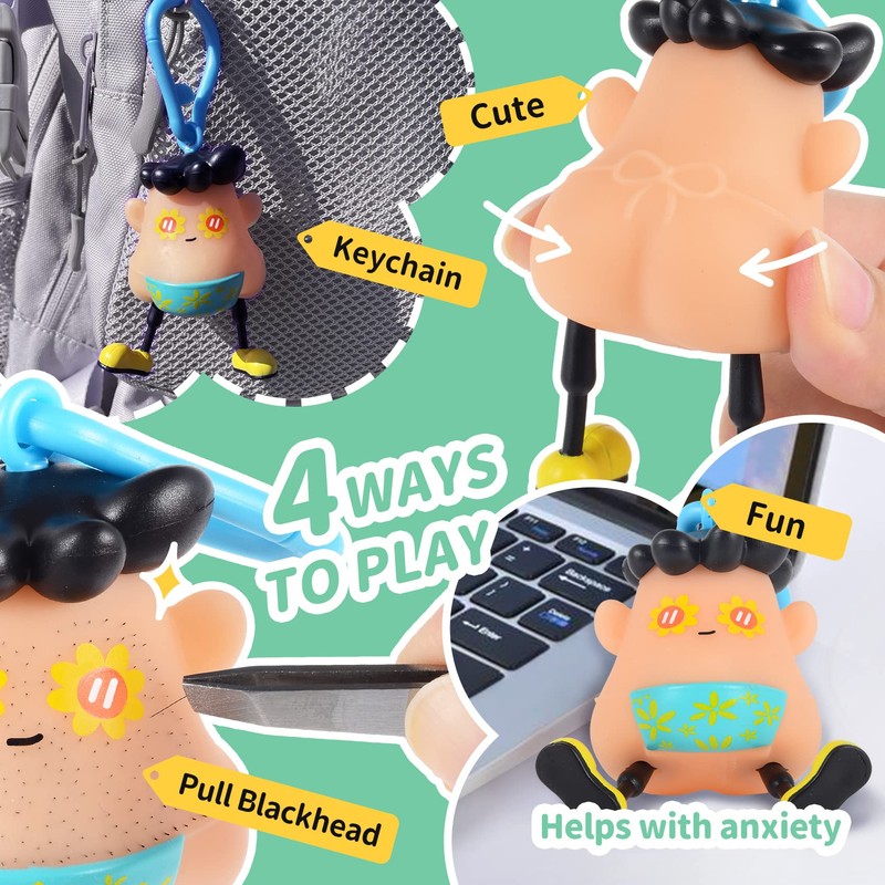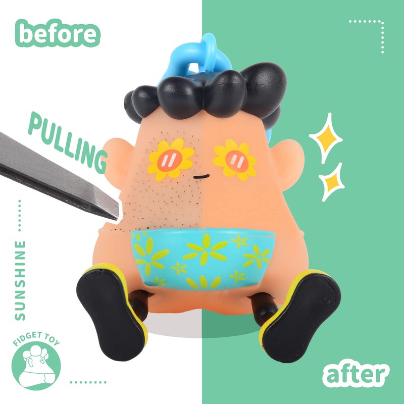 - 【Release Stress & Anxiety】It is sort of engrossing to pull this little guy's hairs out one by one. could see this being a hit with a compulsive pimple popper, hair twirler or eyelash puller. Pulling out his little hairs/blackheads is quite addicting. you end up with a happy but odd-looking little keychain toy to serve as a memento.