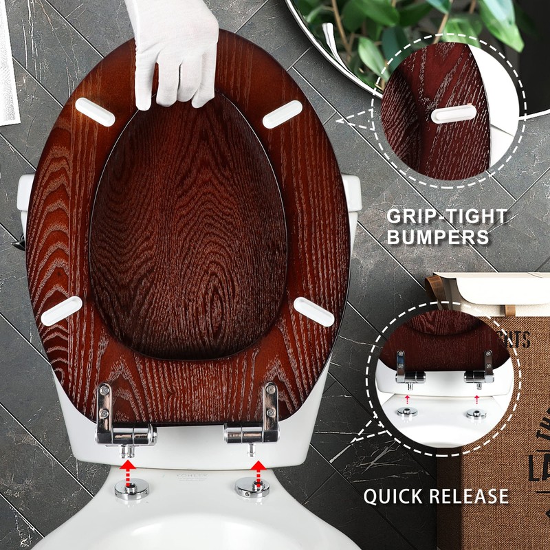 Angel Shield Elongated Wood Toilet Seat with Quiet Close,Easy Clean,Quick-Release Hinges(Elongated,Dark Walnut)
