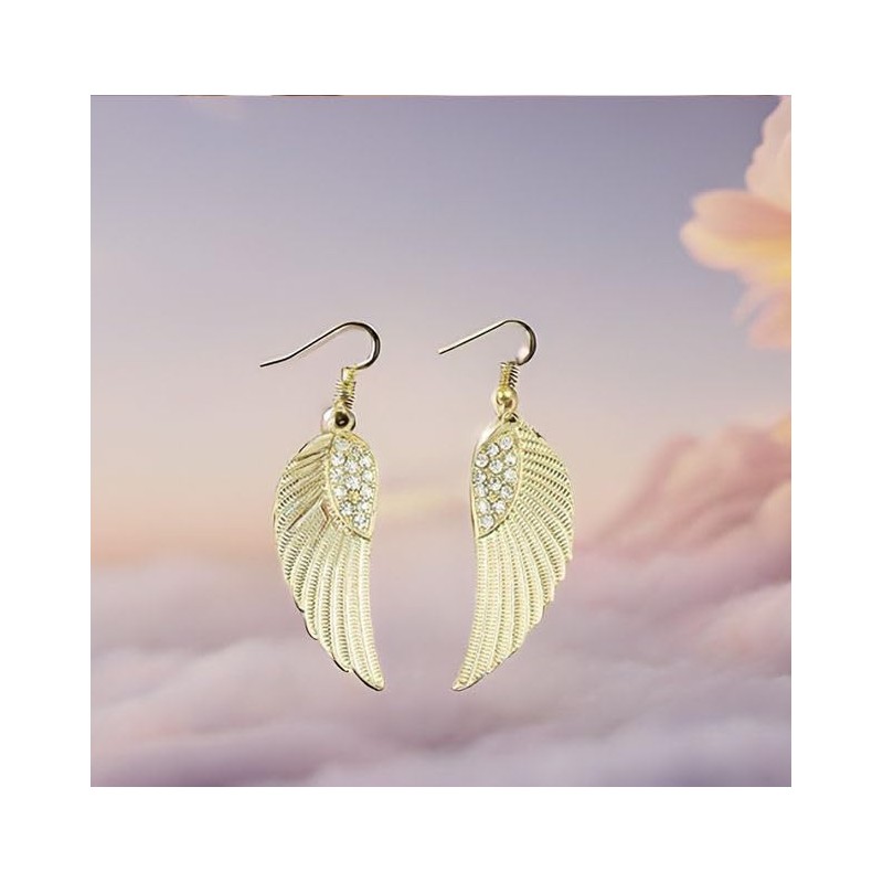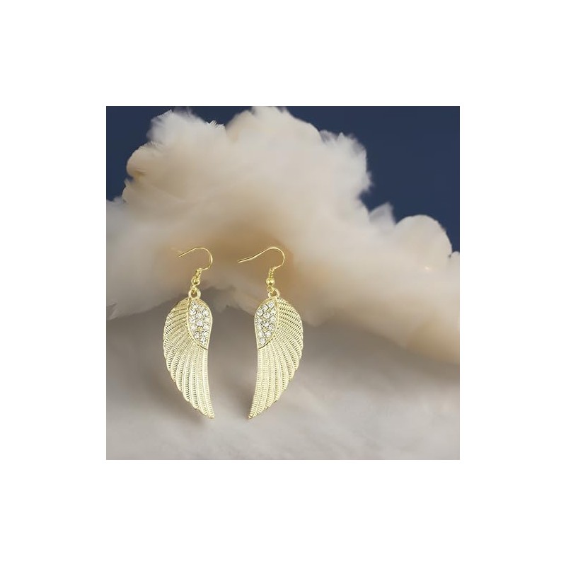 Elevate your style with these ethereal Angel Wings Earrings. Crafted in a stunning gold shade, these delicate earrings feature intricate wing details that capture the essence of angelic beauty. Perfect for adding a touch of celestial charm to any outfit, these earrings are both elegant and versatile
