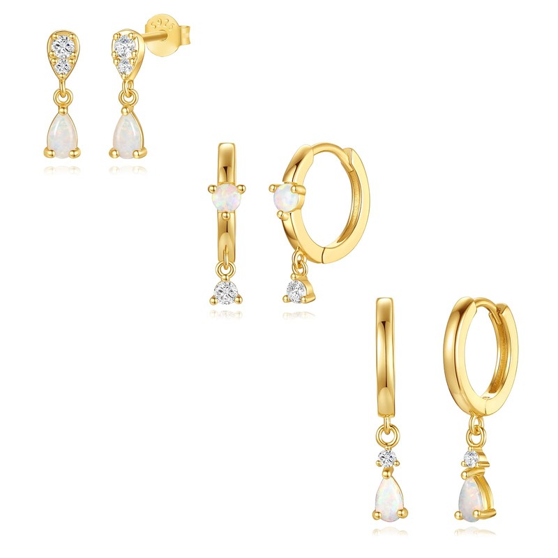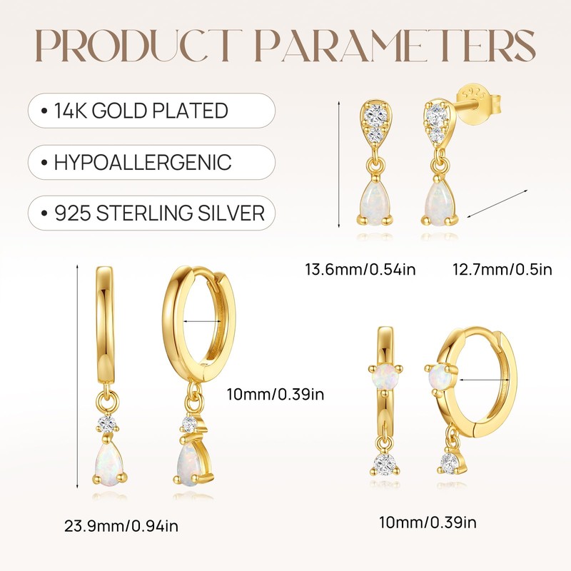 - Opal Earrings Set: Treat yourself to our charming set of 3 elegant opal earrings - delicate huggie earrings, stylish opal studs, and elegant hoop dangles. Opals, historically known as "Cupid's Paederos," symbolize enduring love and gentle passion. Every angel deserves unconditional love
