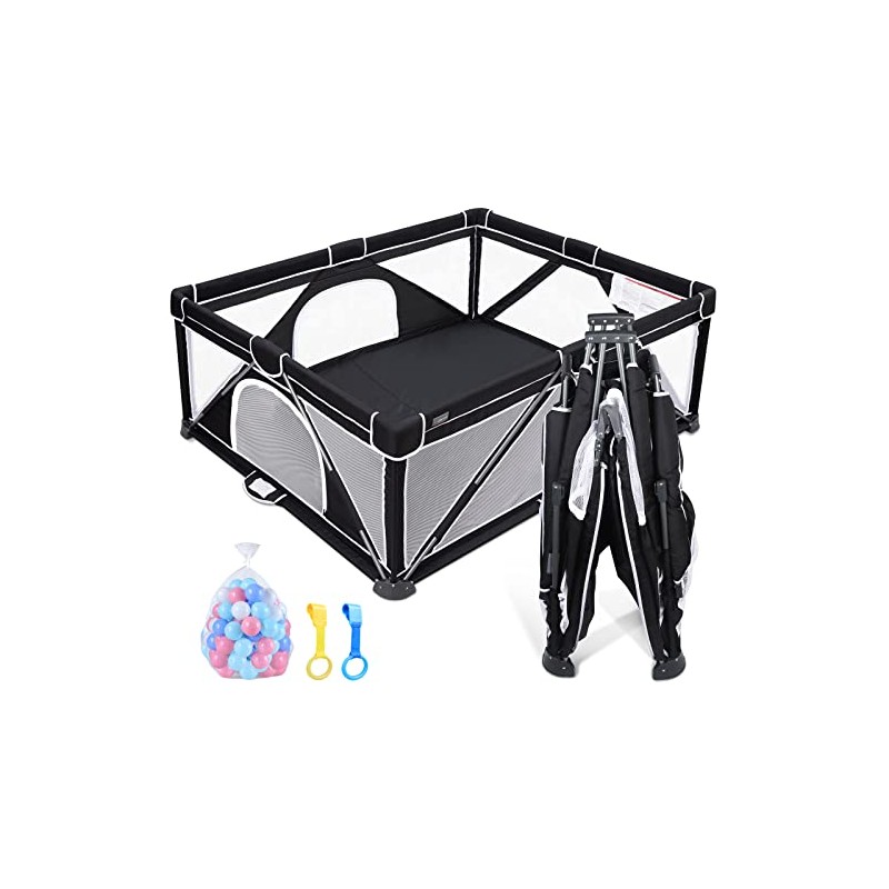 ANGELBLISS Baby Playpen, Foldable Playpen for Babies and Toddlers, Indoor & Outdoor Baby Activity Center with Visible Breathable Mesh, Portable Play Yard with 2 Handlers+50 Balls