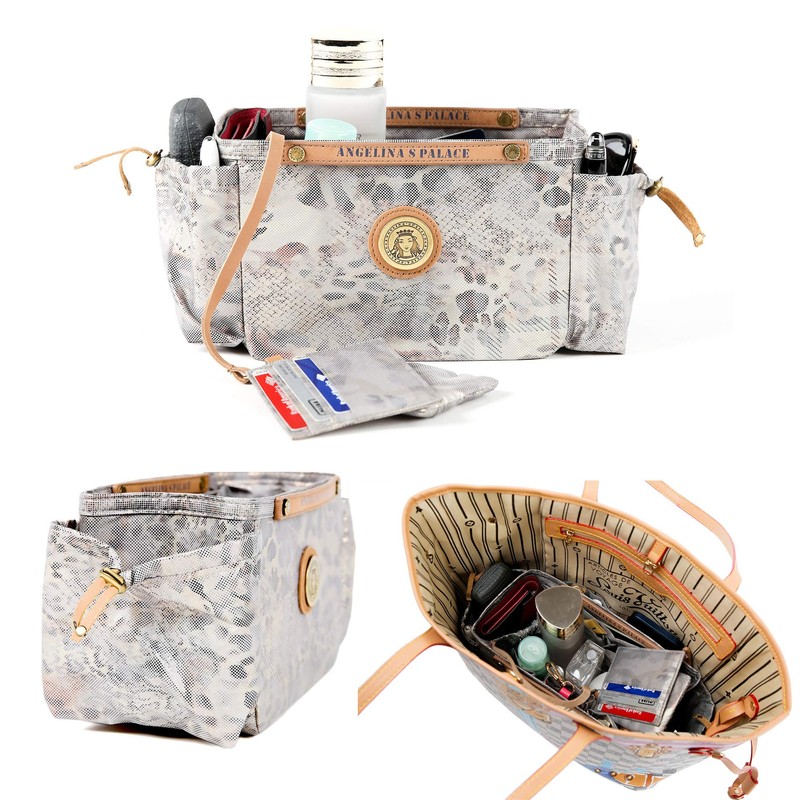 Angelina's Palace Hetta Purse Insert Bag Organizers Adjustable Handbag Sharpers Tote Storage Gift for Her(Metallic Silver)