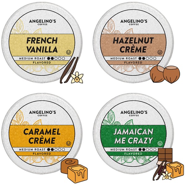 Angelino's Coffee, 96 Count, Compatible with Keurig 2.0 K-Cup Brewers (Flavored Variety, 96 Count)