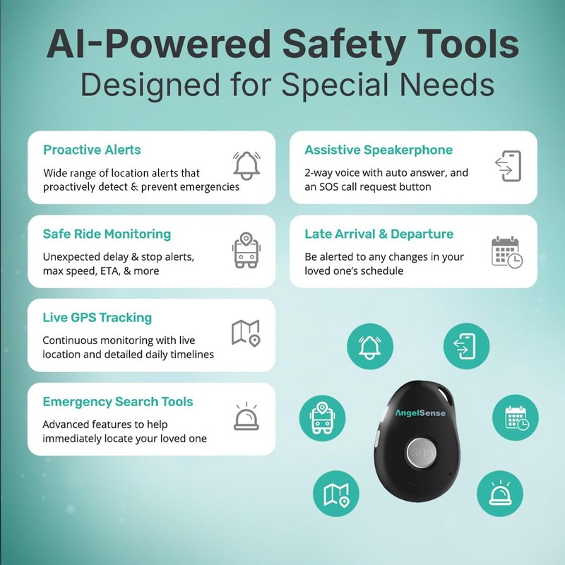 - INTELLIGENT iALERTS: Only AngelSense Auto-Learns daily routine for alerts when potentially dangerous situations occur: Early Departure, Unexpected Places, Late Arrival, Late Departure | SAFE RIDE MONITORING: Live Route, Max Speed, ETA, Unexpected Delays & Stops, Know if they miss the bus, get off at the wrong stop, the bus breaks down, or got off the bus but didn’t go into school. Standard GPS devices only provide alerts for preset geofences, we monitor your loved one anywhere & everywhere!