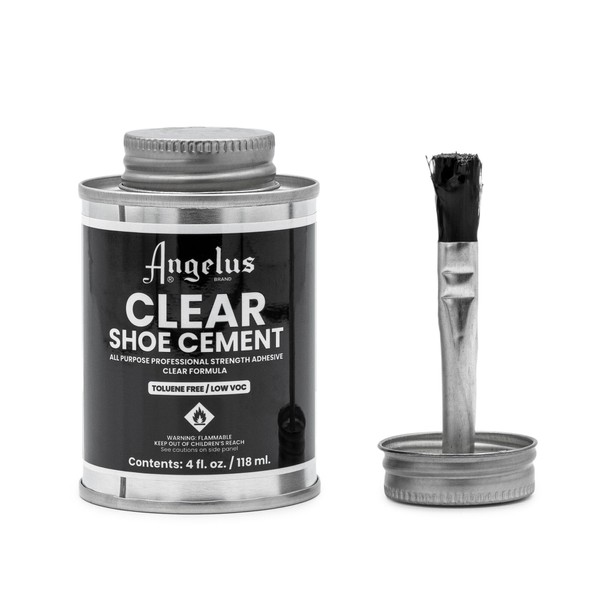 Angelus Clear Shoe Cement - 4 oz Professional-Strength Glue Quick Drying Contact Adhesive for Leather, Vinyl & Fabric - Dries Clear, No Stains, Waterproof Shoe & Sneaker Rubber Cement Glue with Brush