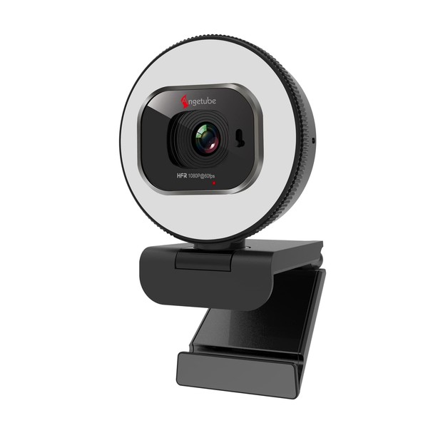 Angetube Webcam 1080P 60FPS with Ring Light, HD USB Streaming Web camera with Privacy Cover Autofocus Built-in Microphone for Computer PC Laptop Mac