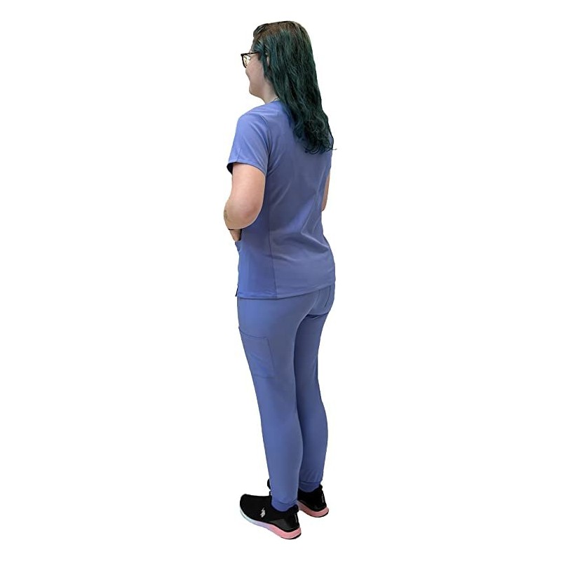 • Designed with a V neck scrub top and spandex side panels, our scrubs set for women ensures a modern fit, made even more comfortable with its stretchy fabric.