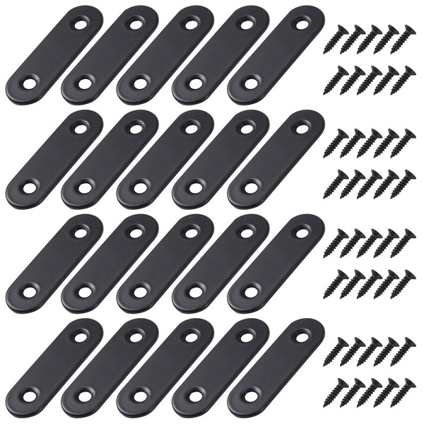 Angle Connector Flat Angle Brackets Right Angle Stainless Steel Corner Bracket Furniture Flat Corner Brackets with Screws for Table Chair Bookshelf 50 x 16 mm Black 20 Pieces