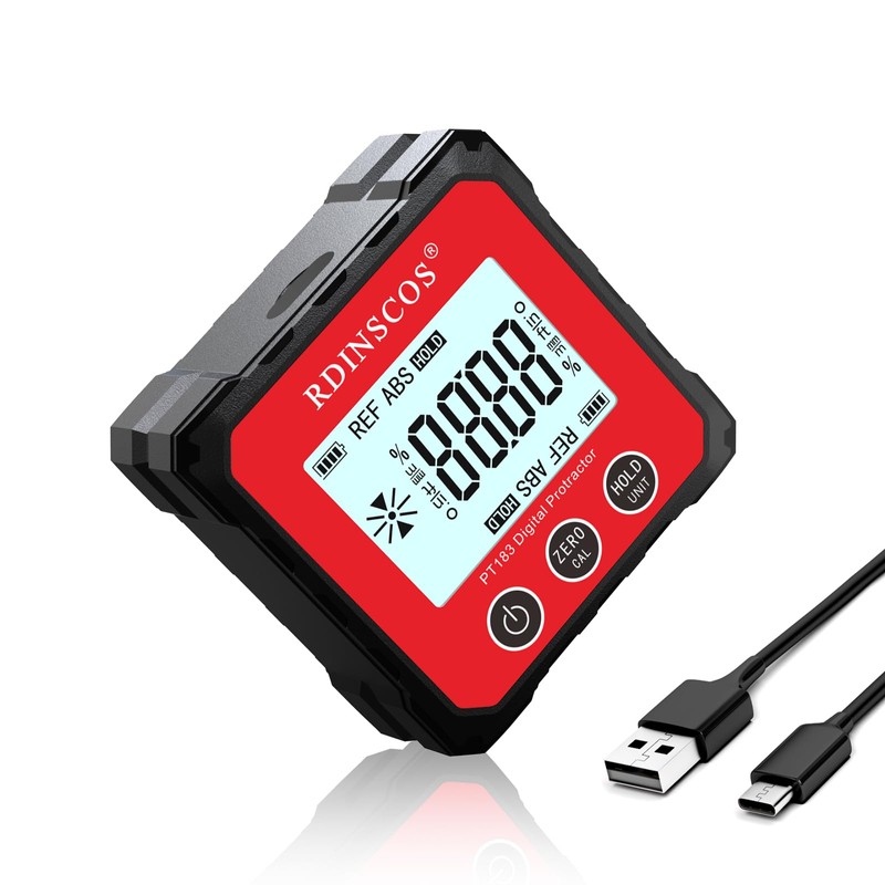 Angle Finder Line Digital Level Tool, Woodworking Tools, 4-Side Magnets Miter Saw Protractor, Electronic Level, Measures & Sets Angles, Hanging Pic (PT183)