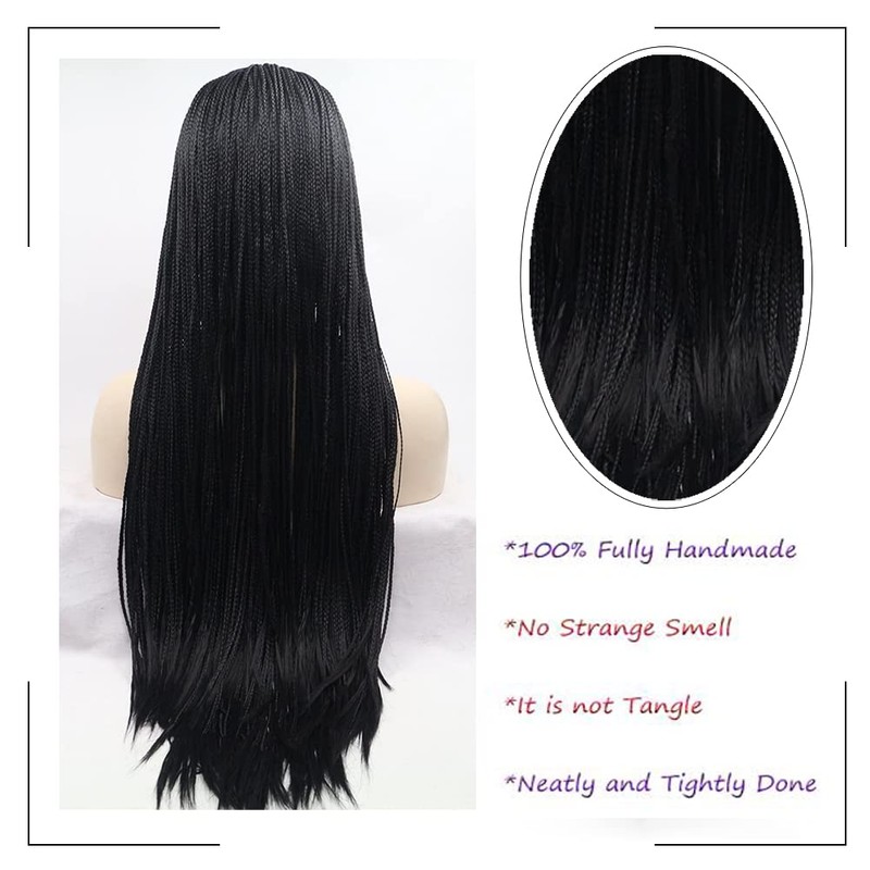 Angle Lucky Black Micro Braided Wigs Synthetic Lace Frontal Braided Wig Handmade 1B Natural Color Knotless Braids Heat Resistant Fiber Afro Braided for Women 26''