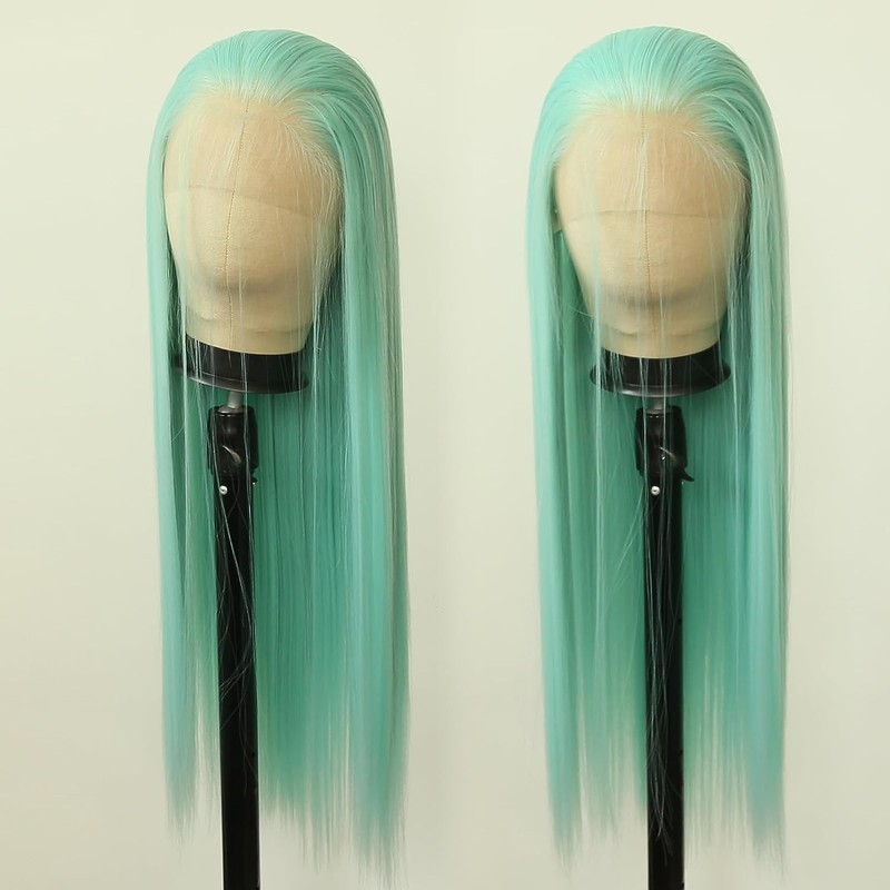 - 【Mint Green Lace Straight Wig】 Green Light Color Wigs For Women,13*3 Free Part Lace Front Wig High Density Long Silky Straight Mint Green Daily Wig With Transparent Lace For The Best Natural Looking,Top Quality Lace Front Wig With Realistic Hairline,Soft Mermaid Lace Front Wigs, HD Lace