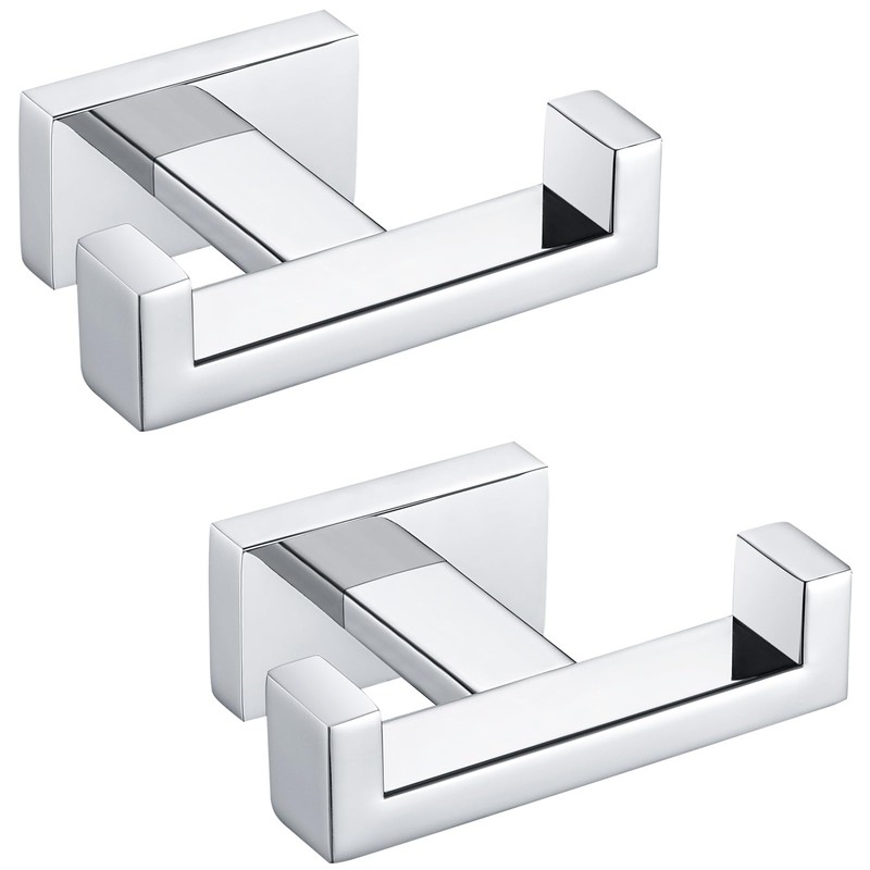 Angle Simple Double Towel Hook Polished Chrome 2 PCS, 304 Stainless Steel Bathroom Hook for Wall, Robe Coat Hook