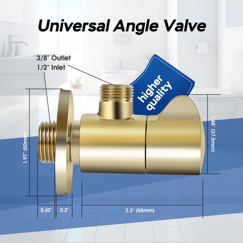 - 3. Easy Installation: With a 1/2" inlet and 3/8" outlet size, our angle valve is compatible with most standard plumbing connections, making installation quick and hassle-free.