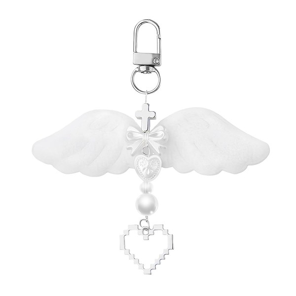 - Perfect Design of Angle Wing Keychain: The white wings Keychain features a pure white wing design, paired with a hollowed out heart, white bow beads, and a cross pendant, exquisite and elegant, perfect angle wing cross keychains for girls women, cross keychain for bags handbags