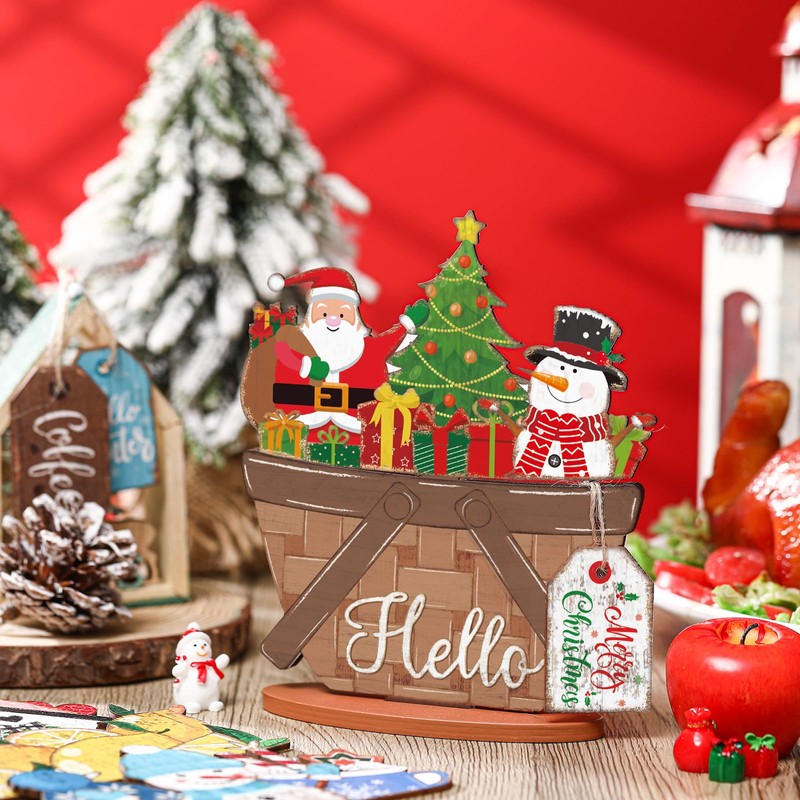 Anglechic 42 Pcs Small Christmas Flower Basket Interchangeable Sign Seasonal Holiday Tier Tray Decor Set Farmhouse Rustic Replaceable Wood DIY Hanging Drop Home Desk Ornament Thanksgiving Winter Gifts