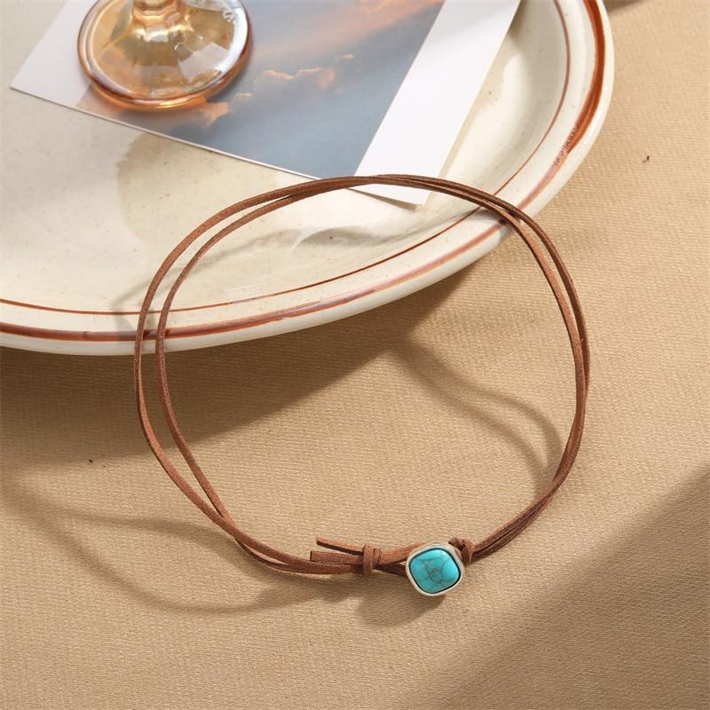 ANGLEQUEEN Turquoise Choker Necklace for Women,Bohemian Leather Necklace Boho Brown Suede Leather Necklaces Boho Wrap Necklaces Jewelry (B-Brown)