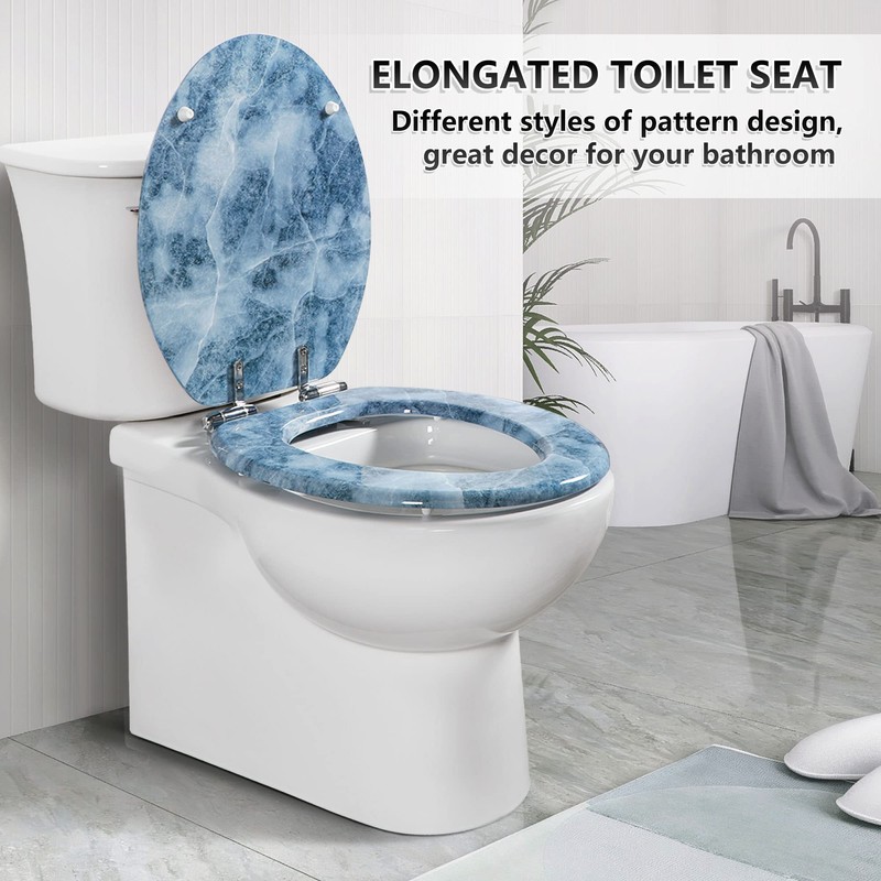 Angol Shiold Elongated Toilet Seat Molded Wood Toilet Seat with Quietly Close and Quick Release Hinges, Easy to Install also Easy to Clean (Elongated, Blue Marble)