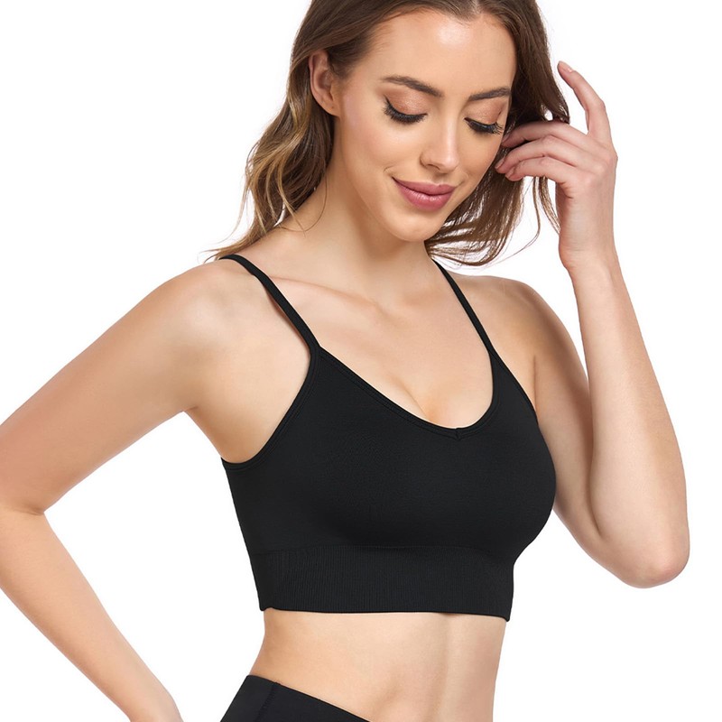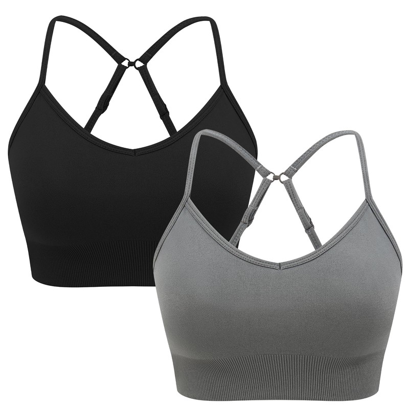 ANGOOL Women's Seamless Sports Bras Wireless Non-Wired with Removable Pads Adjustable Spaghetti Straps Light Support for Yoga Gym Workout, Black+Gray, L
