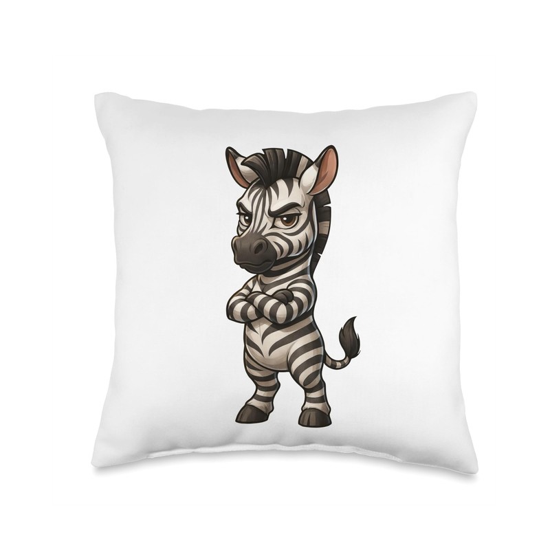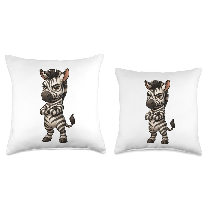 Angry Cool Zebra Funny Animal Cartoon With Attitude Throw Pillow