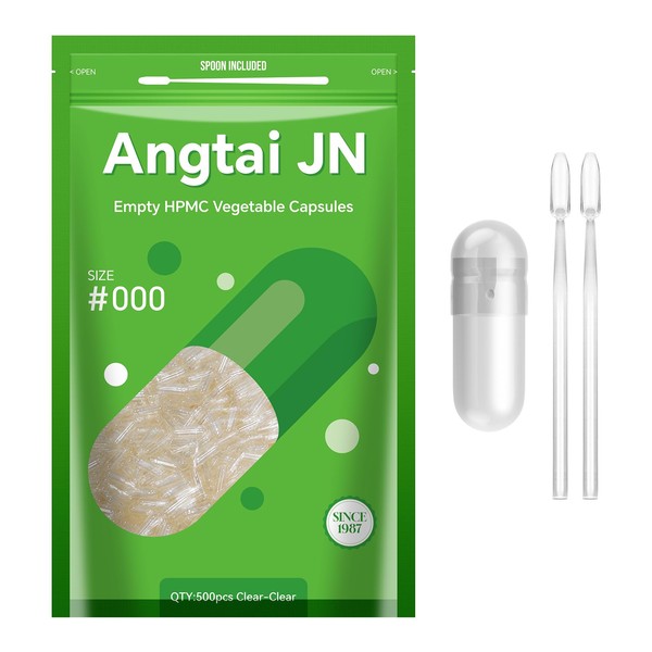 AngtaiJN Empty Vegan Capsules, Size 000 (Pack of 500), Clear Empty Capsules for Filling with 2 Micro Spoons, DIY Empty Capsules 000, Compatible with Capsule Filler, Size 000