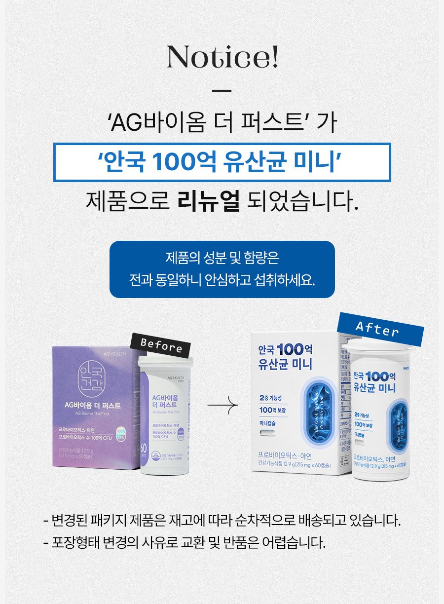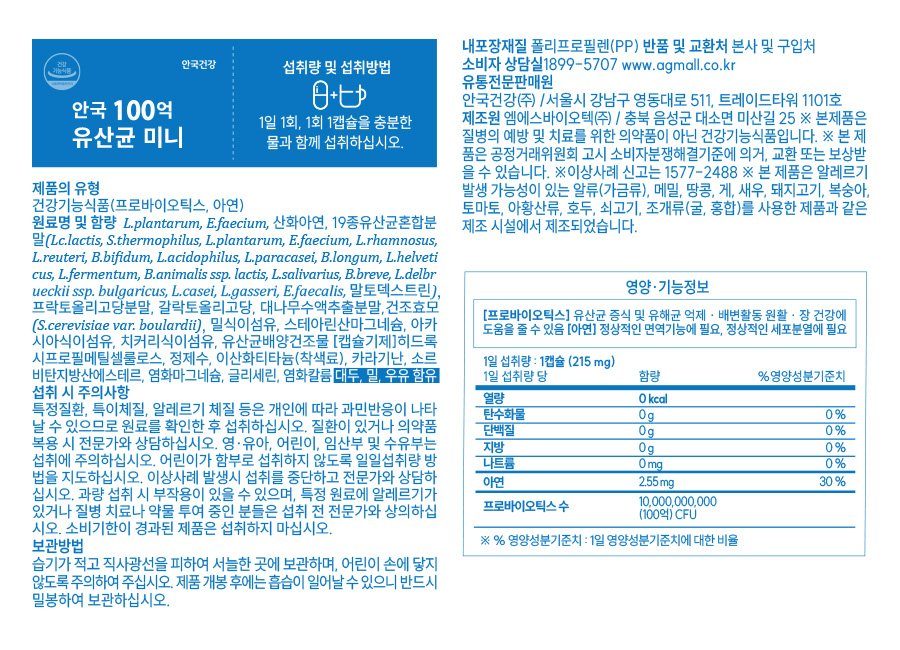Anguk Health 안국 100억 유산균 미니 60캡슐 2박스 (4개월분) Anguk 10 Billion Probiotic Mini 60 Capsules 2 Boxes (4 Months Supply)