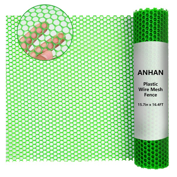 ANHAN Green Chicken Wire Mesh Fence Roll 15.7in x 16.4ft,Plastic Garden mesh Sheet Plant Barrier Netting Temporary Fencing for Poultry Netting Fence Dogs, Rabbit, Animal Floral Net Protection