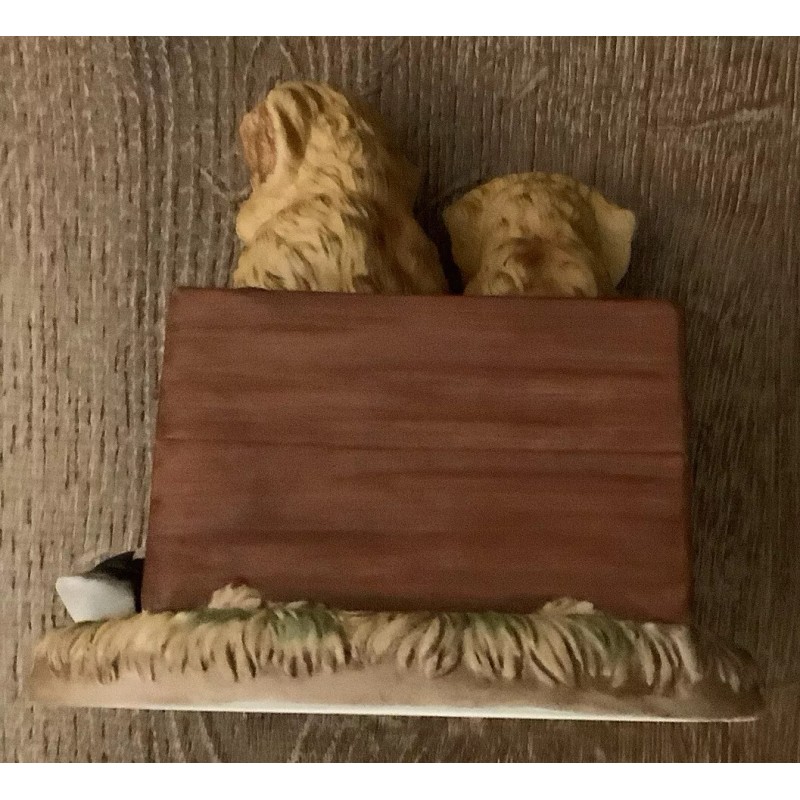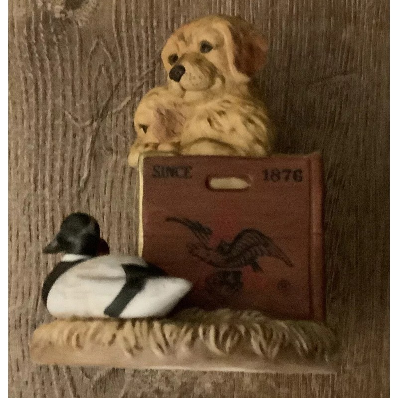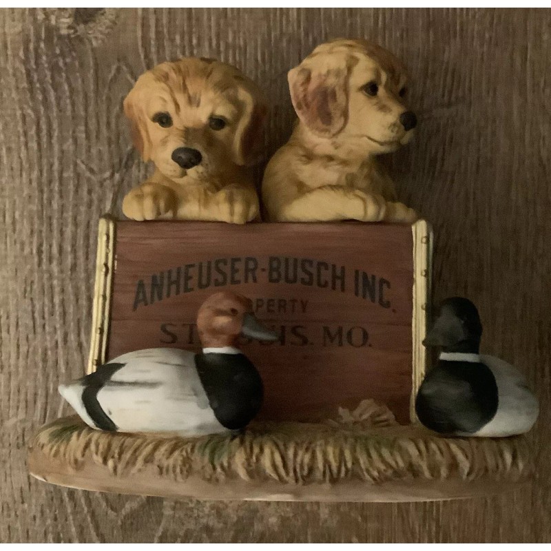 HAND CRAFTED OF THE FINEST PORCELAIN BISQUE DEPICTS 2 puppies and ducks in a beer case