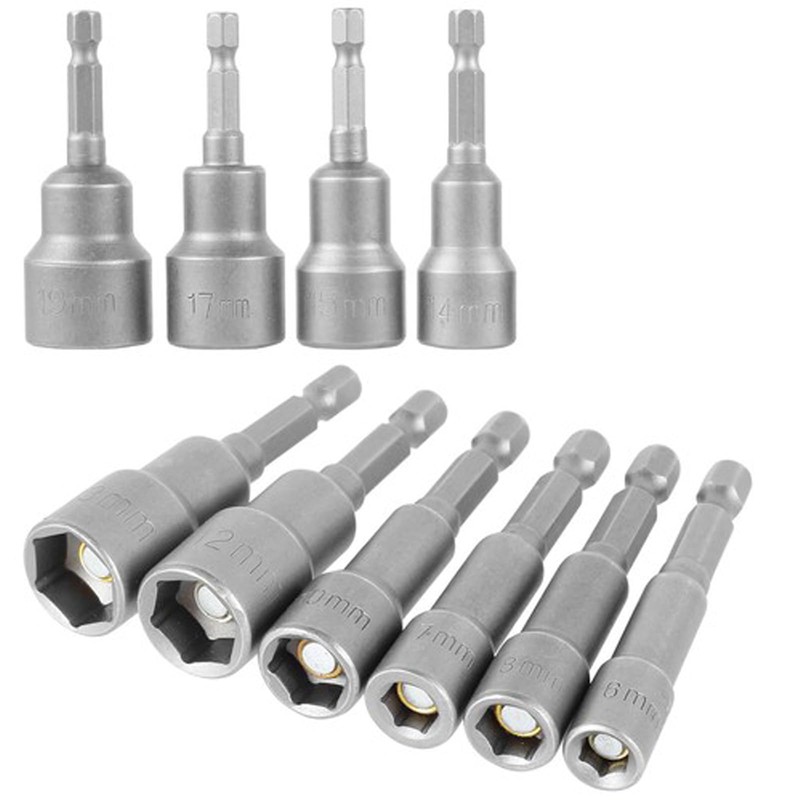 Anhoer Magnetischer Sechskant-Steckschlüsselsatz, 6–19 mm, Sechskantschaft, Sechskant-Bit-Set, 1/4 Zoll, magnetischer Bohrer-Bit-Set, Schraubenschlüssel-Adapter für Elektroschrauber, 10 Stück