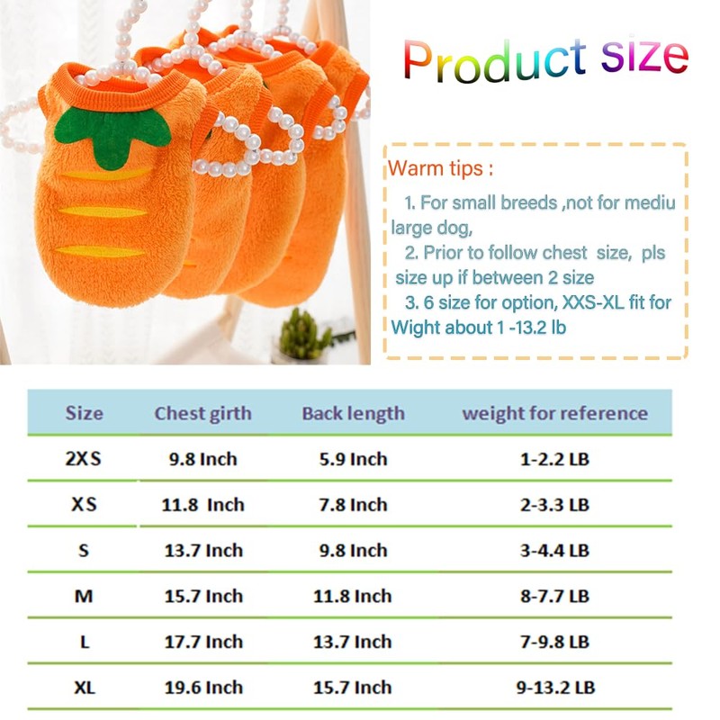 - The guinea pig clothes is designed with carrot shape in bright orange color, adorable and full of Eater atmosphere, dressing your pet with this Easter puppy clothes for small dog will make them more attractive and keep warm.