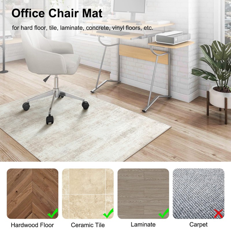 - [Effectively Protective Floor] - Constant chair rolling can leave your floor scuffed, dirty, and worn out. Our chair rug is designed to safeguard against such wear and tear, preserving the condition of your wheels and floor. It's ideal for hard surfaces like hardwood, tile, laminate, and linoleum floors.