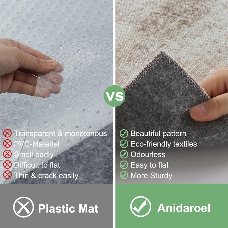 - [Stylish Functional Aesthetic rug] - Departing from ordinary clear plastic or solid color floor mats, Anidaroel under desk rugs showcase a high-quality printed fabric surface that introduces a touch of softness to your floor, effortlessly blending with your surroundings. Ideal for offices, computer rooms, gaming areas, bedrooms, and study spaces.