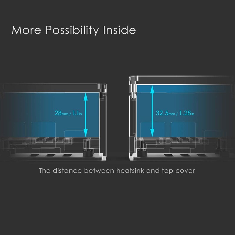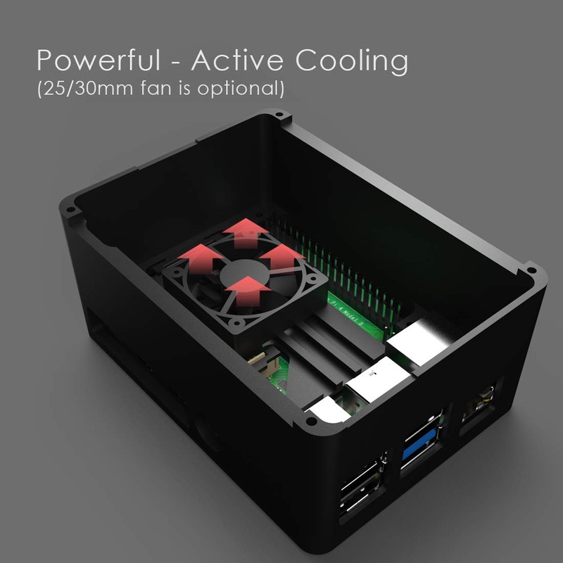 • 【 High Performance 】 Optional installation for 25/30mm fan provides the best cooling potential to avoid overheating and create the perfect performance for Pi4. Max 1.28in / 32.5mm internal space with spacers.