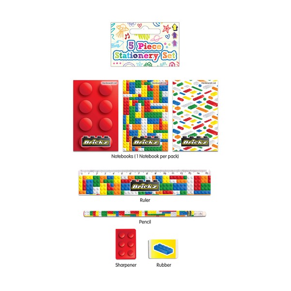 Anilas 5 Piece Stationery Set - Pencil, Sharpener, Rubber, Ruler, Notepad (Bricks)