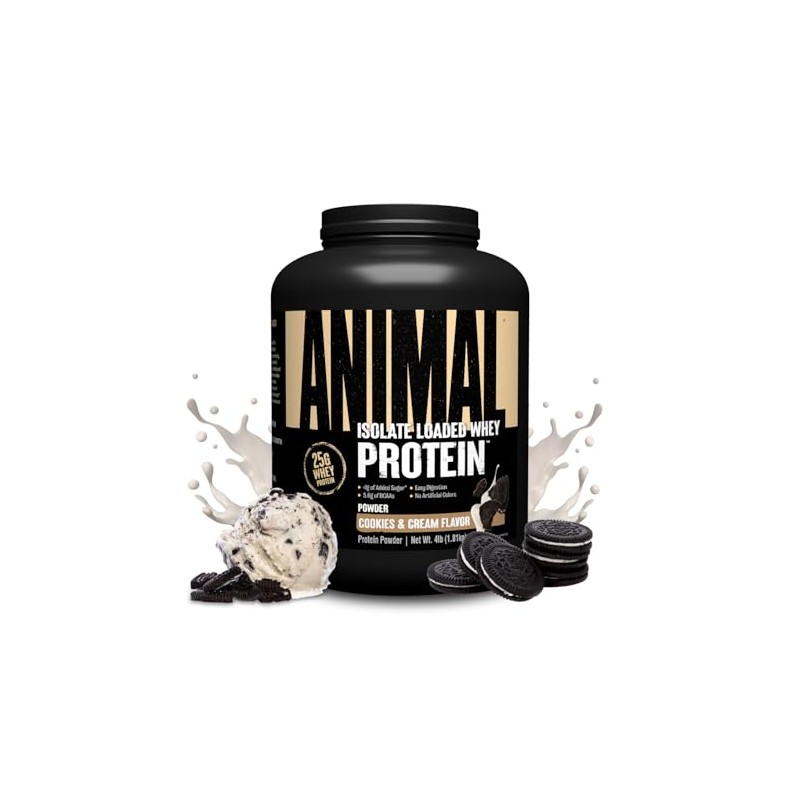 Animal Animal Whey Isolate Protein Powder - Loaded for Pre & Post Workout Muscle Builder and Recovery with Digestive Enzymes for Men & Women - 25g Protein, Great Taste, Low Sugar - Cookies & Cream 4 lbs